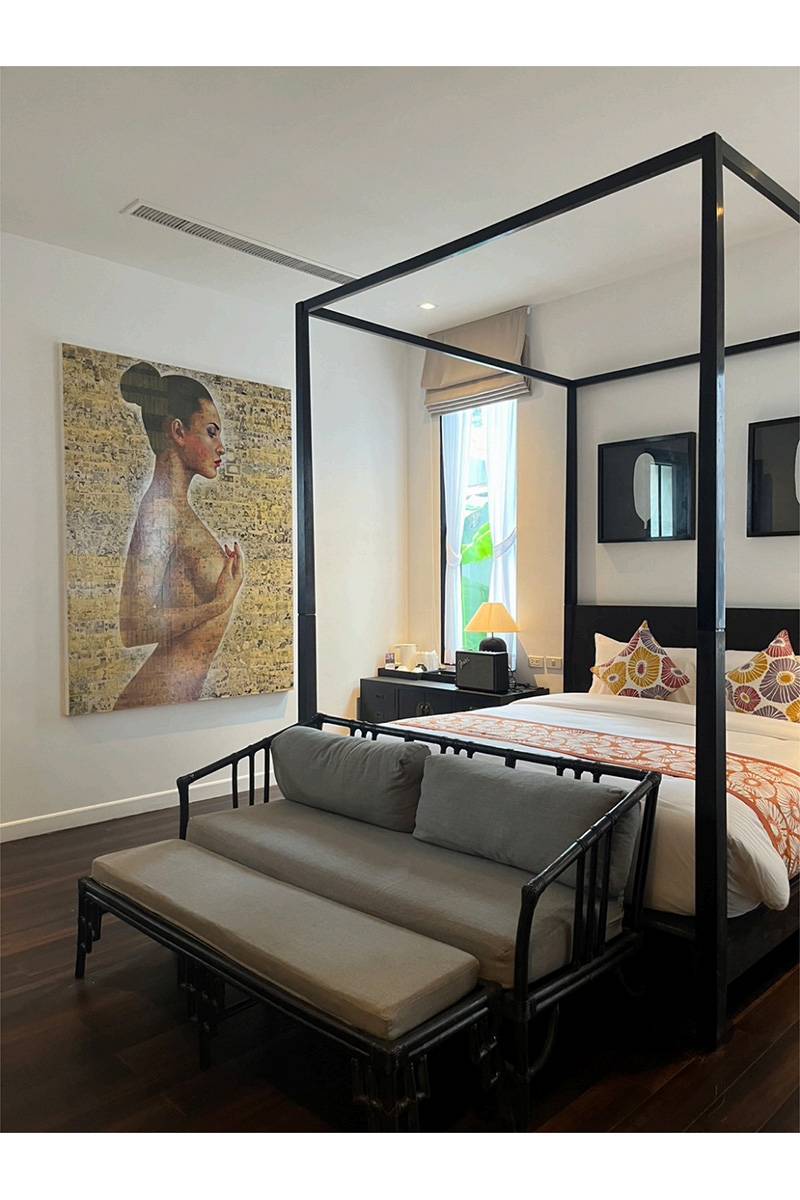 Blending clean contemporary lines with traditional Thai accents, the Junior Suite offers a timeless space filled with natural light and warm textures. Every detail, from handcrafted furniture to unique art pieces by a celebrated Bangkok artist, has been curated to inspire relaxation and connection with your surroundings.